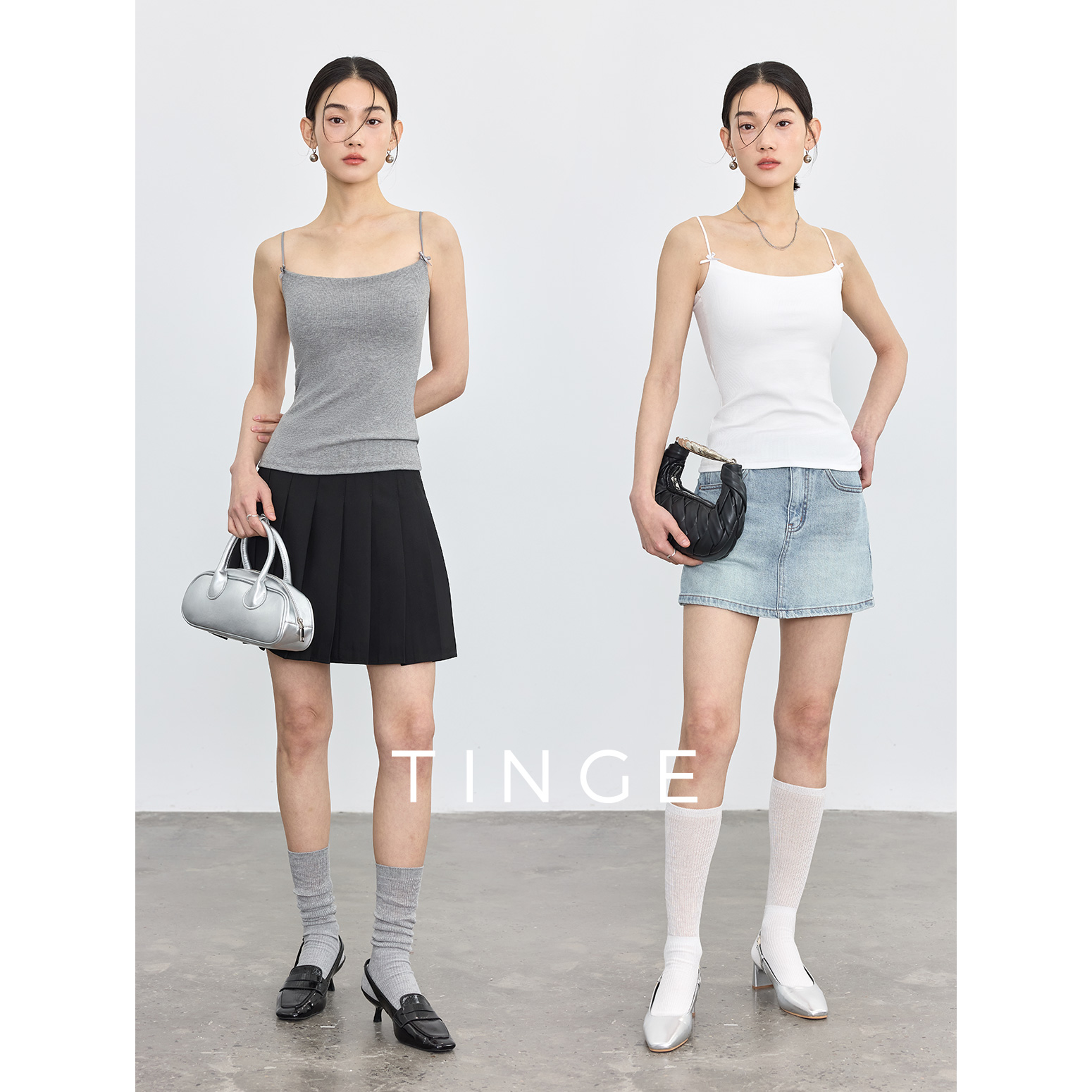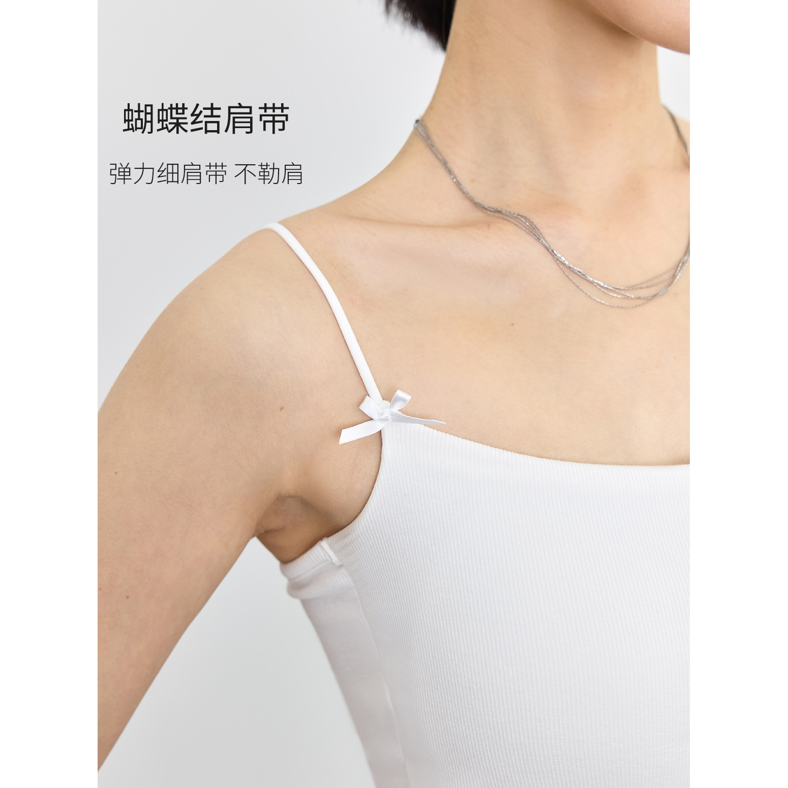 TINGE贴己蝴蝶结细肩带胸垫吊带背心女夏季 文胸一体打底内搭上衣