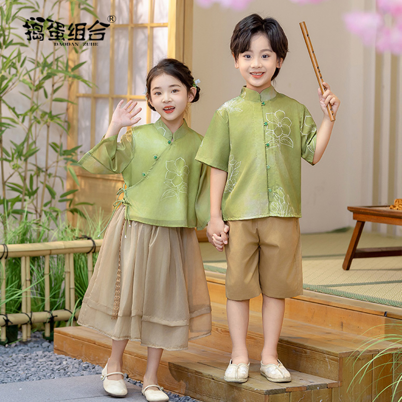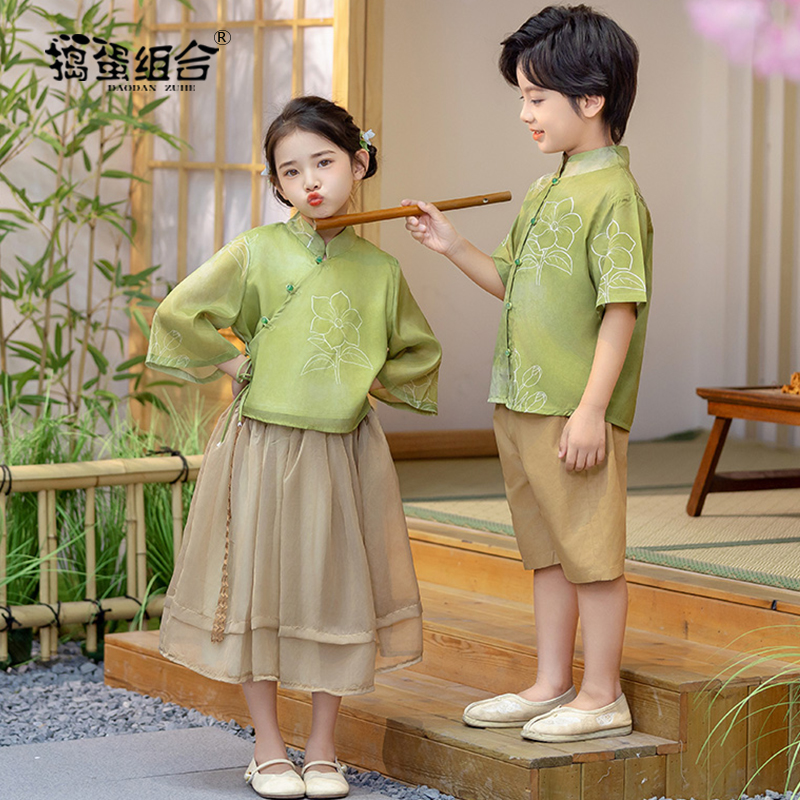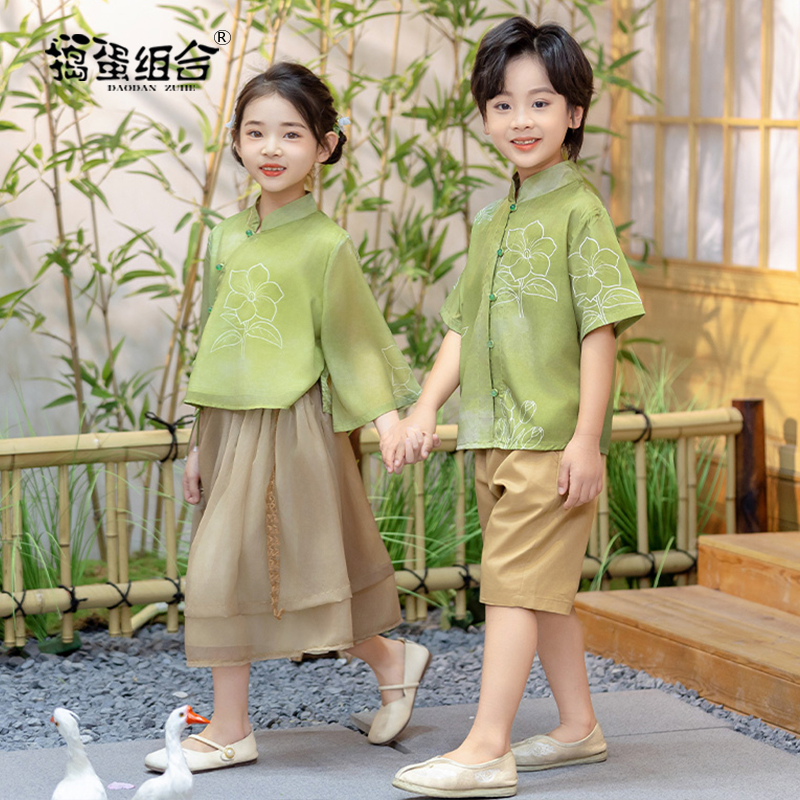 女童民国风日常套装 儿童汉服古装 新中式 短袖 幼儿园国庆演出服 夏季