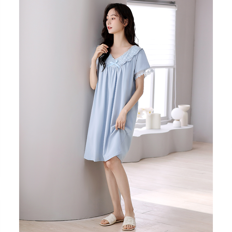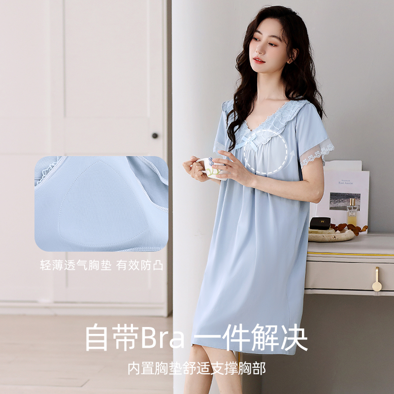 孕妇夏款 带胸垫睡裙女夏季 夏天2025新款 睡衣裙薄款 连衣裙 纯棉短袖