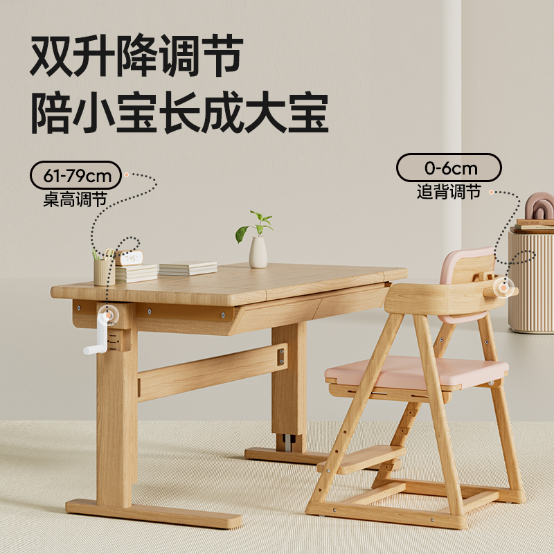 爱果乐儿童学习桌家用作业课桌小学生升降写字桌子榉木书桌椅套装