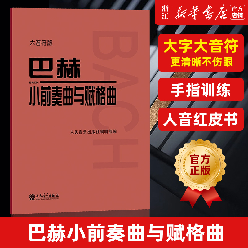 人民音乐出版 大字版 社官方正版 红皮书 儿童初级钢琴基础练习曲教材教程书籍曲谱 巴赫小前奏曲与赋格曲 巴赫小前奏曲集 大音符版