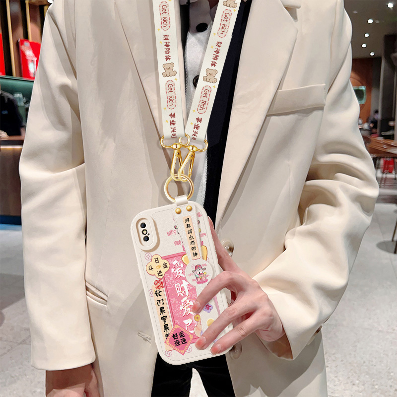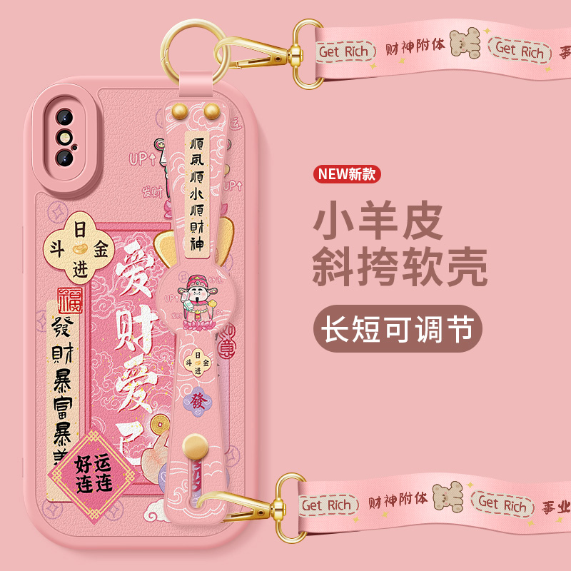 适用苹果x手机壳iPhonexsmax新款 女爱财爱己xs背带斜跨腕带挂绳小羊皮保护套iphone十软壳xr防摔ip苹果10外壳