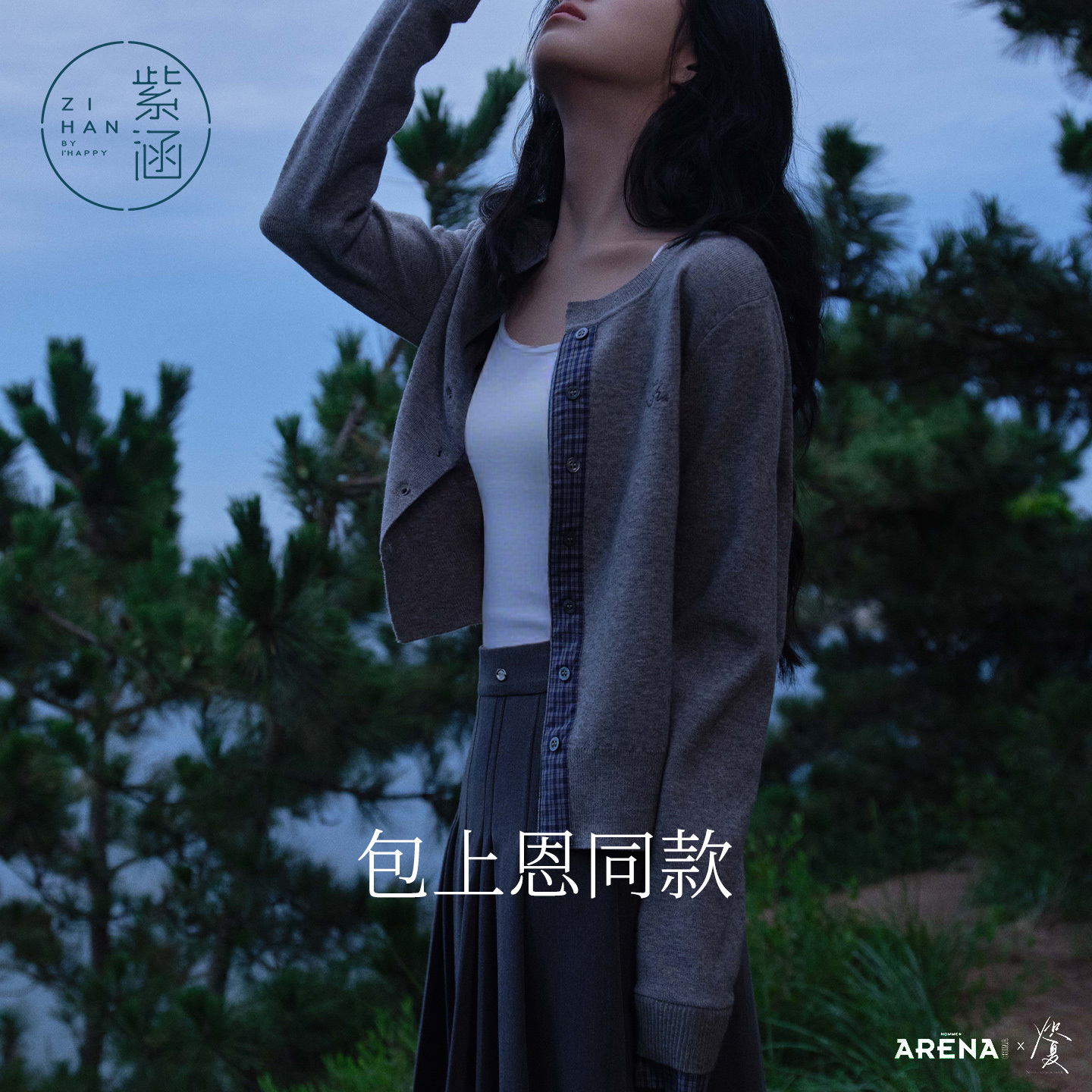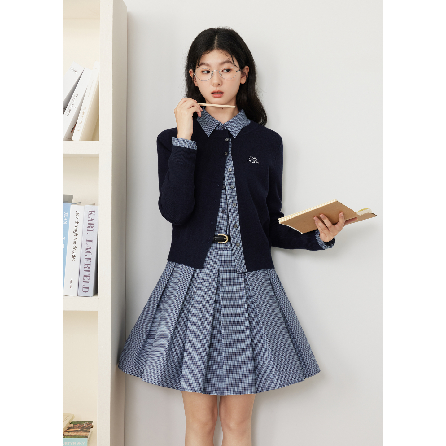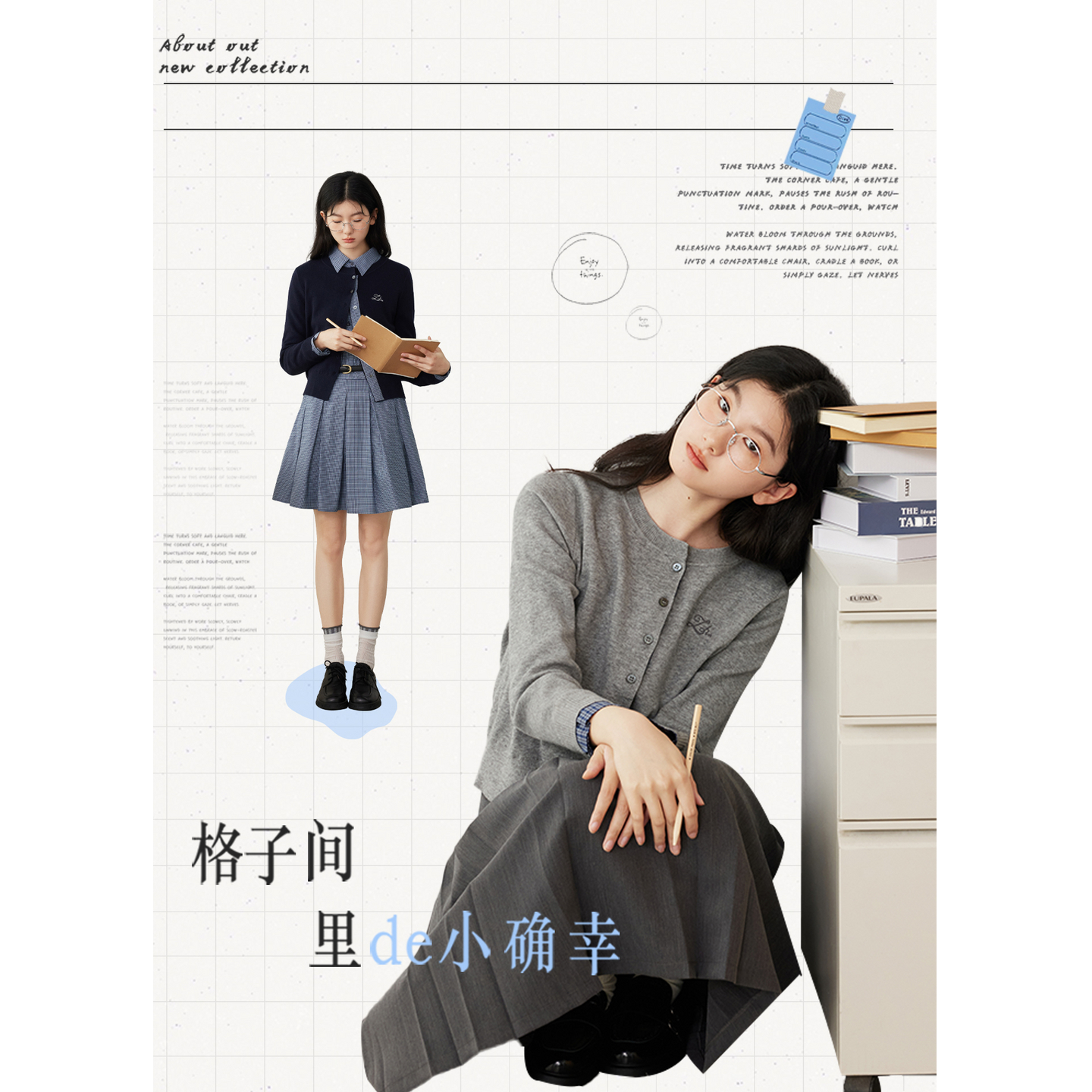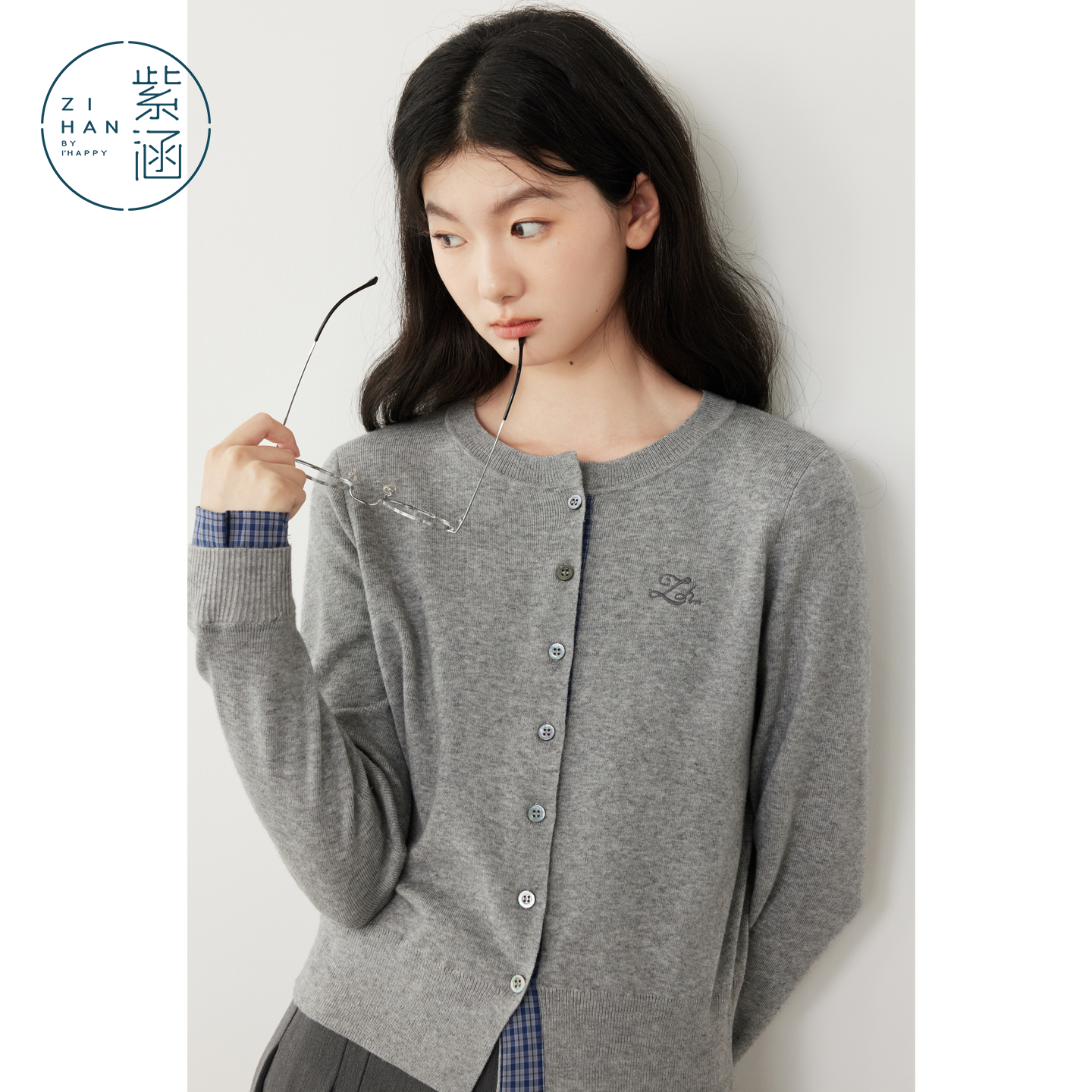 高智风格 紫涵圆领长袖 新款 女2025秋季 纹撞色拼接毛衣外套 针织开衫