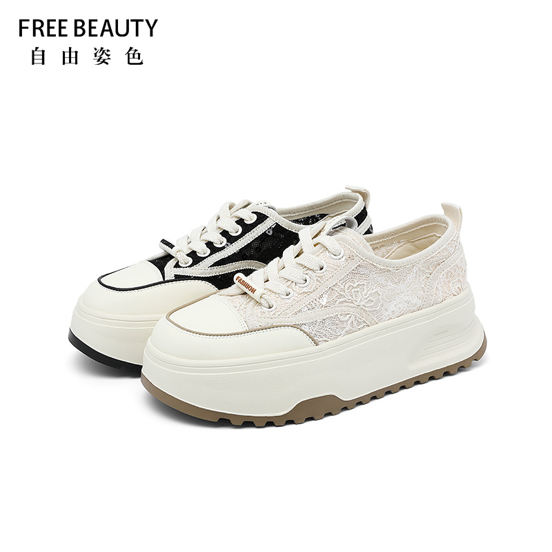 仙女风透气休闲鞋 自由姿色春秋新款 蕾丝网纱厚底增高系带新中式