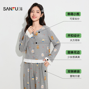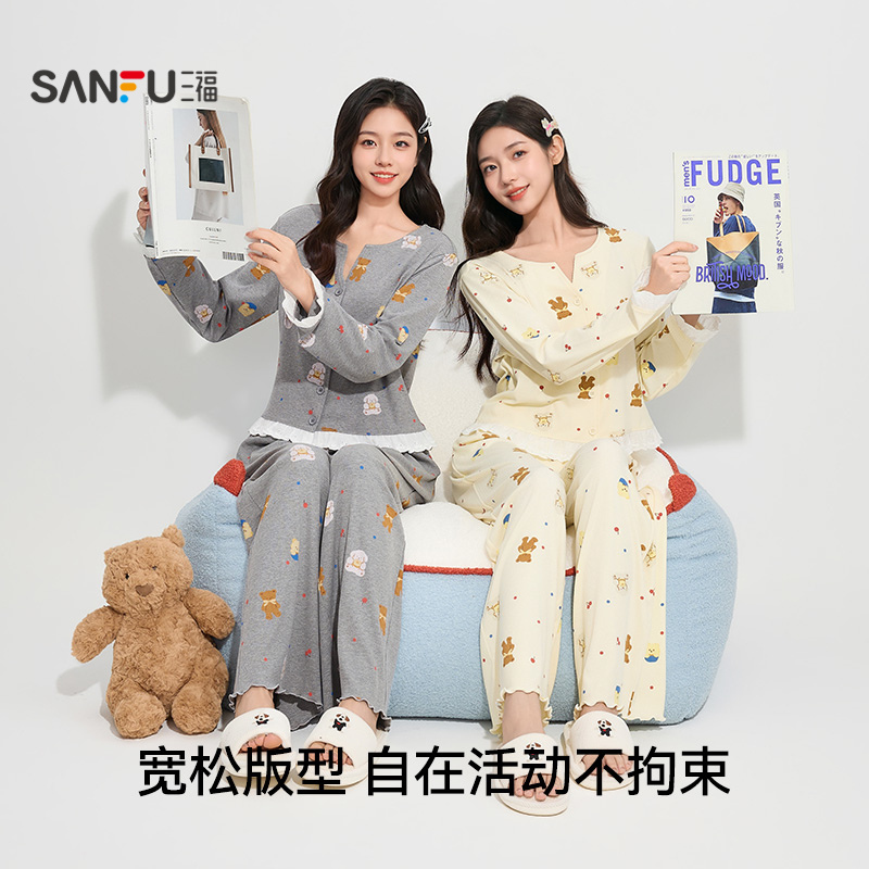 家居服套装 芬腾纯棉睡衣女长袖 甜美2025新款 女生秋季 可外穿 春秋款