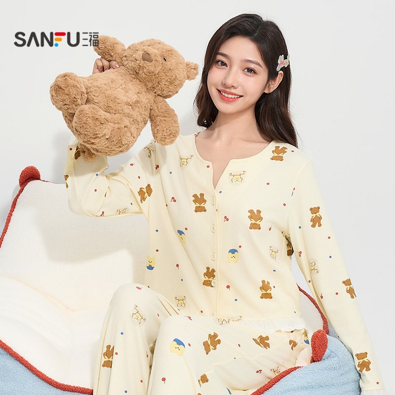 女士可爱布朗熊男款 套装 抗静电家居服 纯棉长袖 芬腾情侣睡衣春秋季