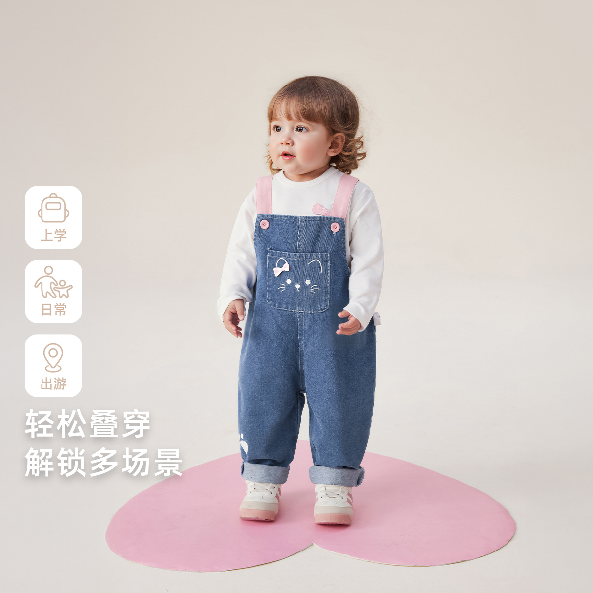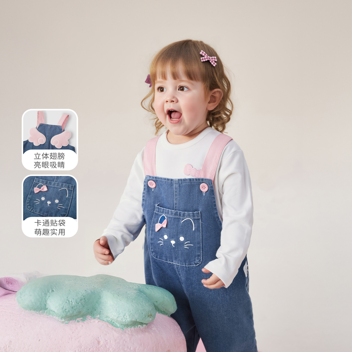 宝宝可爱牛仔裤 秋装 小女孩休闲裤 裤 女童背带裤 儿童秋季 子 7A抗菌