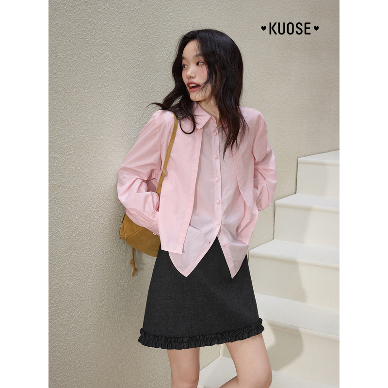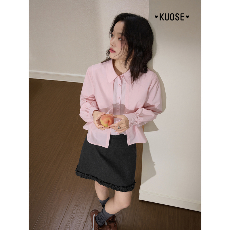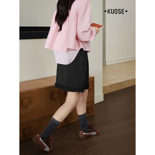 阔色深灰色木耳边半裙a字裙2025秋季 女气质通勤半身裙短裙子 新款