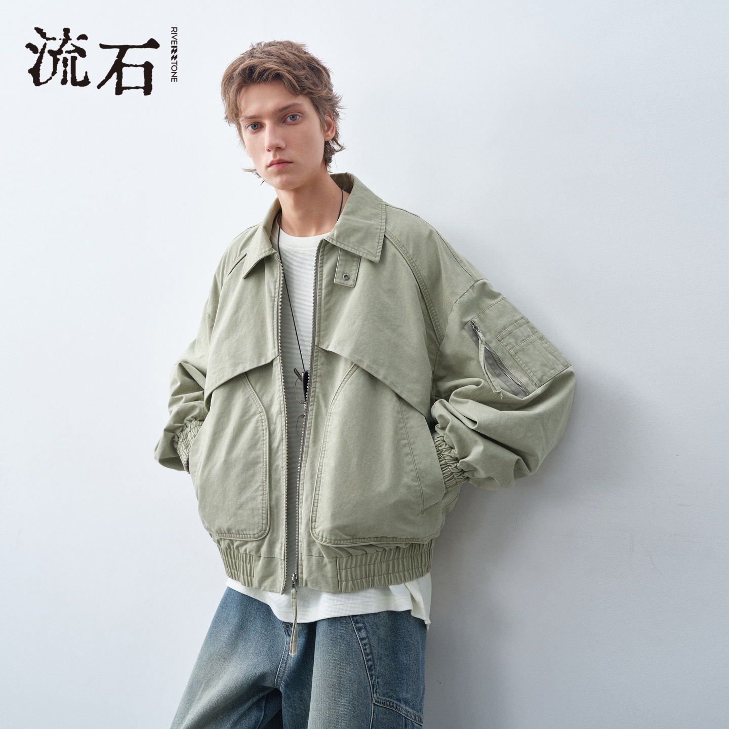 男款 风宽松夹克2025年秋季 拼接多口袋休闲外套 设计感工装 流石男装