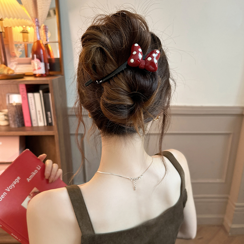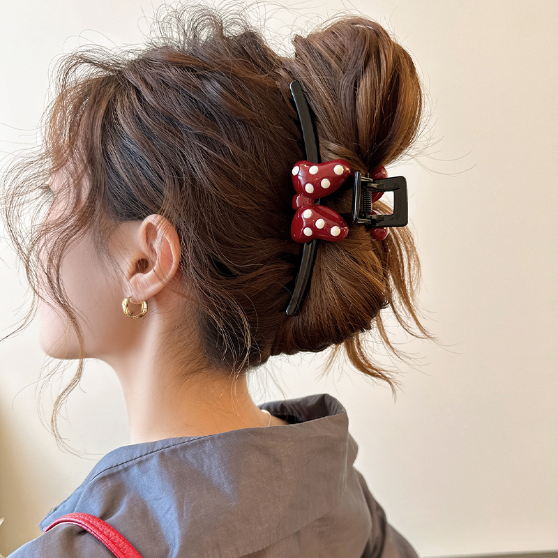 韩系气质波点蝴蝶结鸭嘴夹少女甜美后脑勺盘发夹鲨鱼夹子韩国发卡