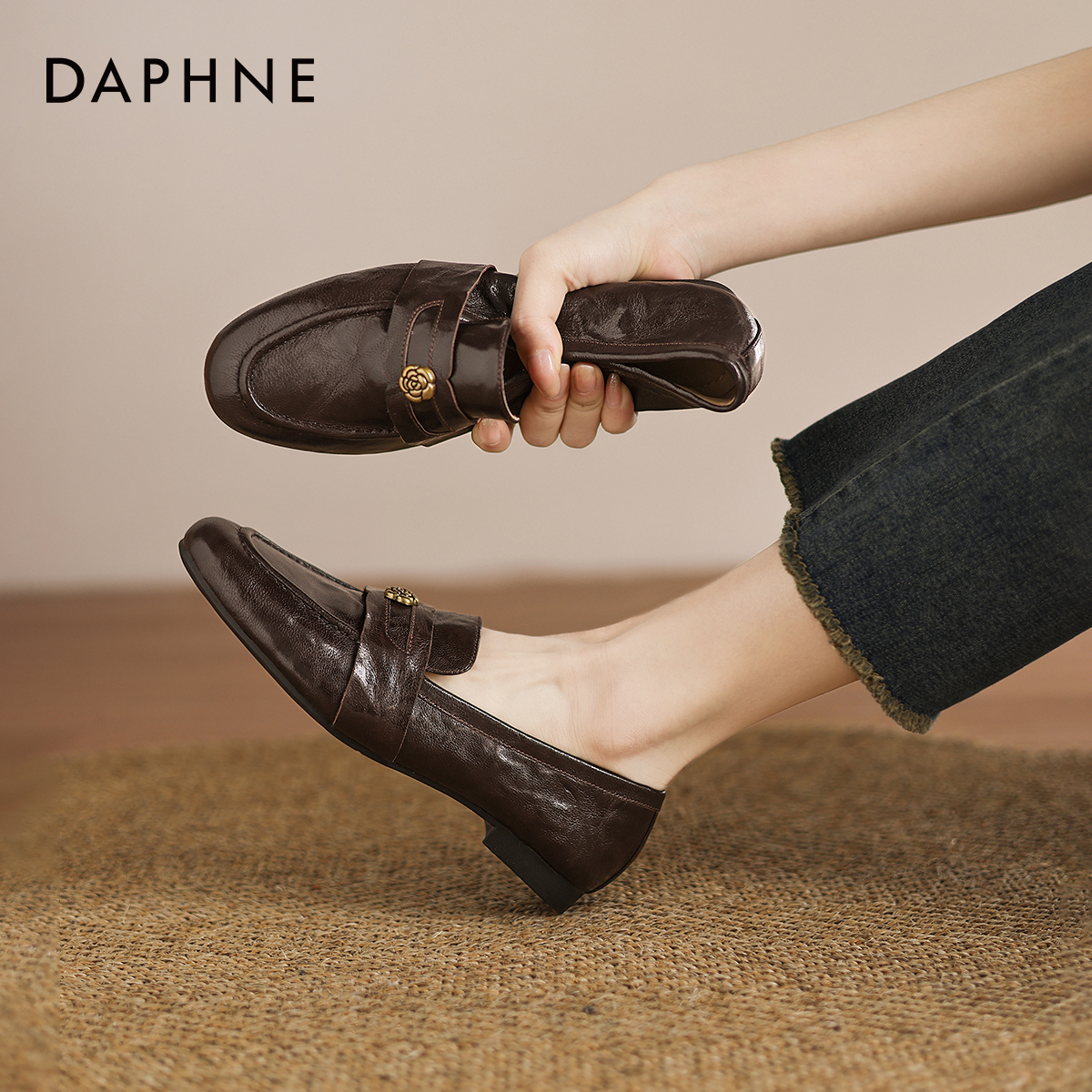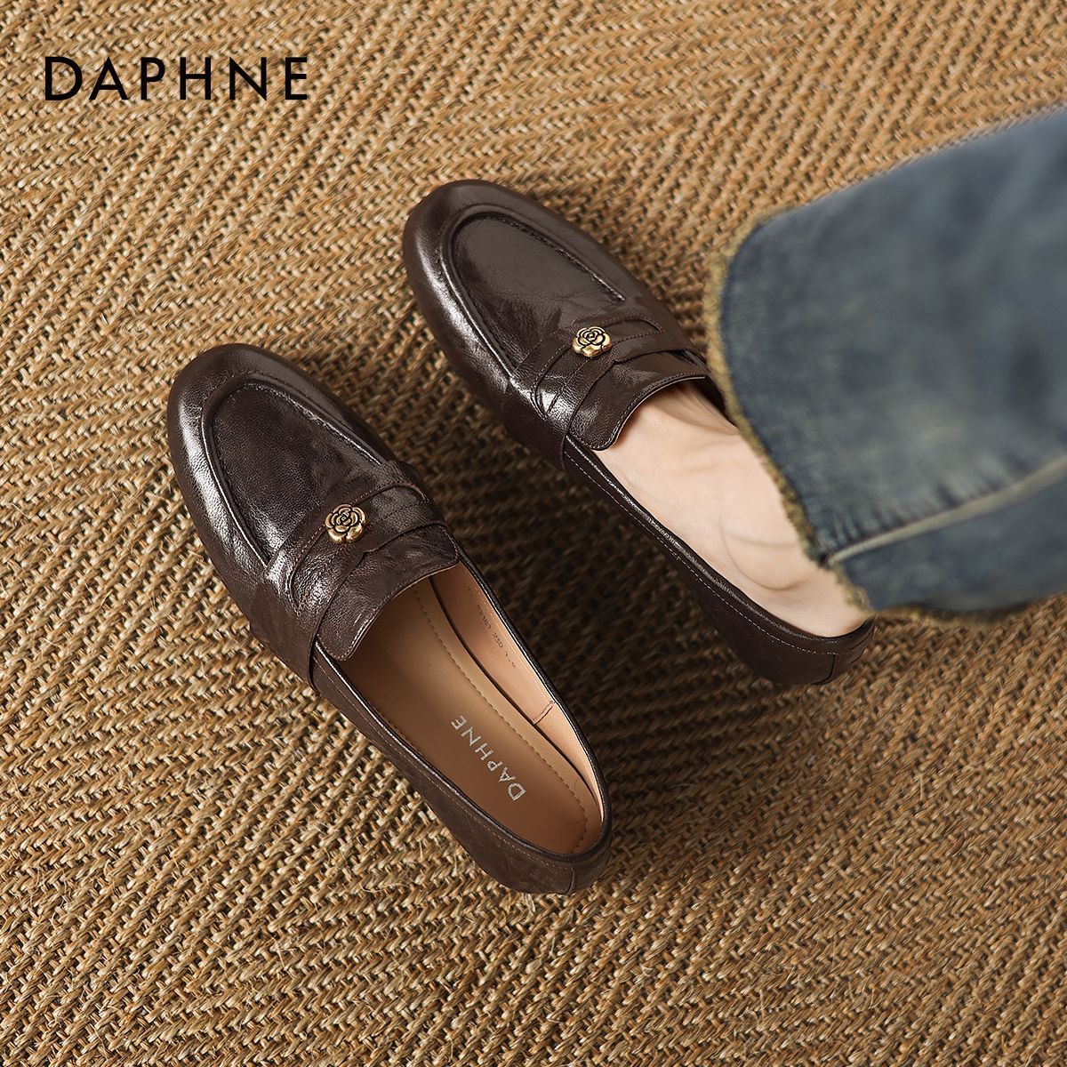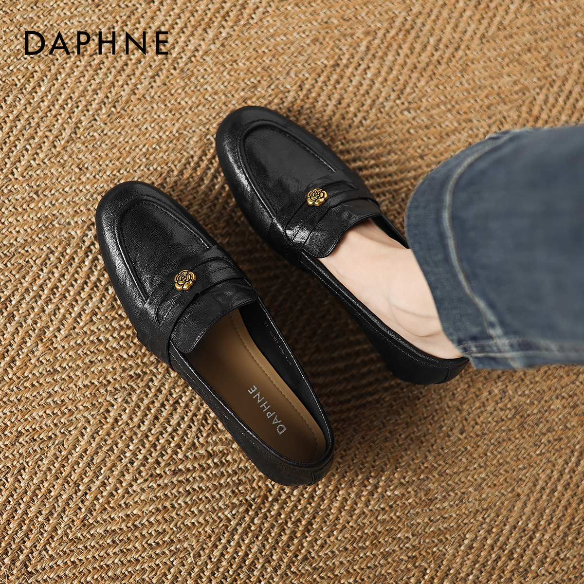女黑色通勤平底单鞋 达芙妮软底乐福鞋 山茶花小皮鞋 2025新款 女秋季