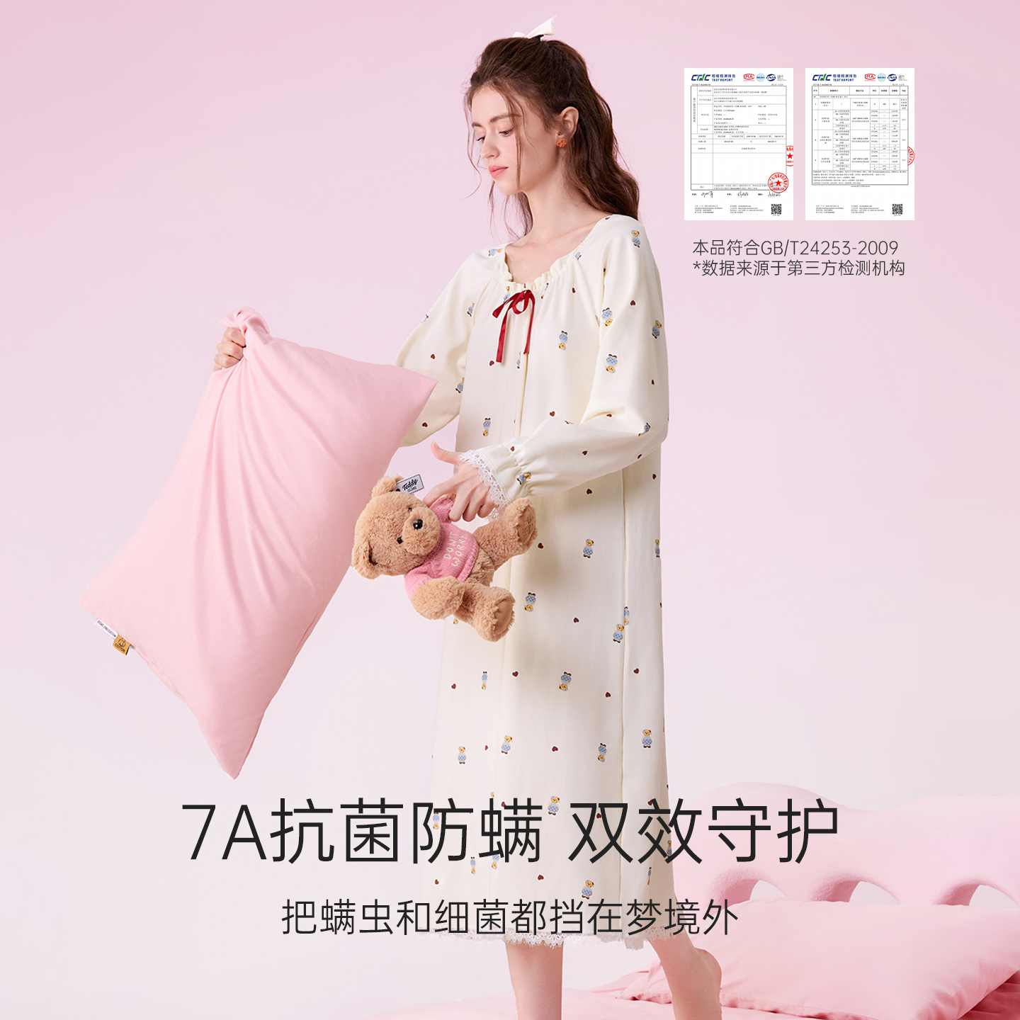 连衣裙休闲卡通睡衣女士家居服2025新款 中长款 纯棉短袖 睡裙女夏季