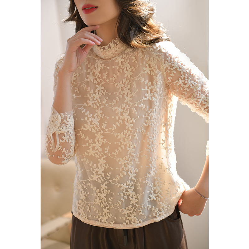 小衫 立领漂亮法式 女2025早春新品 GESGOO气质优雅网纱仙气蕾丝衬衫