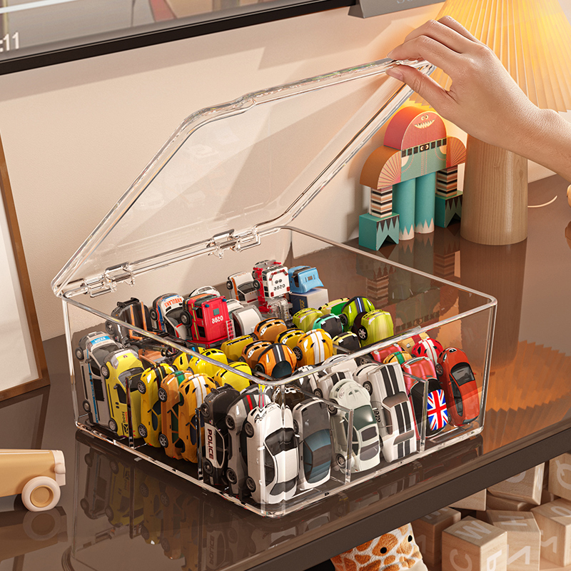高透亚克力桌面收纳盒翻盖式 防尘整理盒卧室宿舍办公室带盖收纳筐
