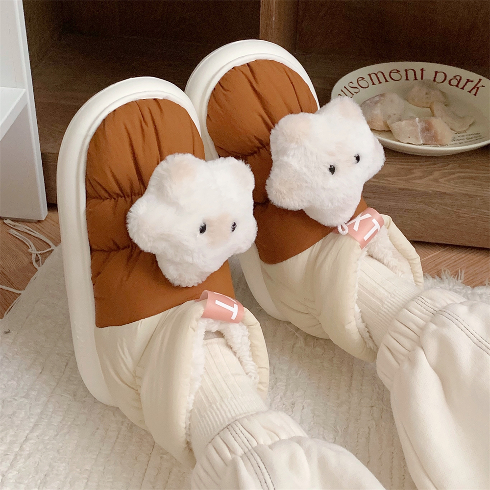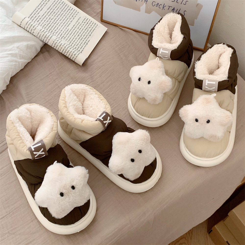 细细条 防滑雪地靴 棉靴简约情侣加绒立体软萌星星男女士ins风冬季