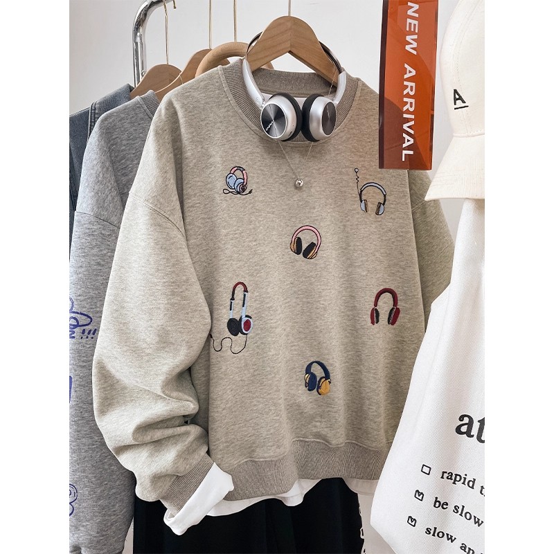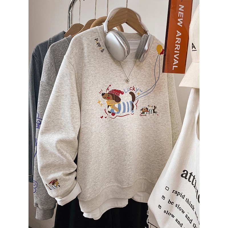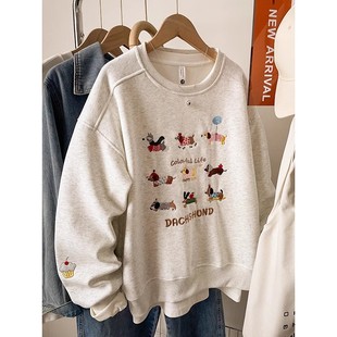 胖mm宽松加绒外套上衣服小个子 爆款 刺绣圆领卫衣女春秋季 2025新款