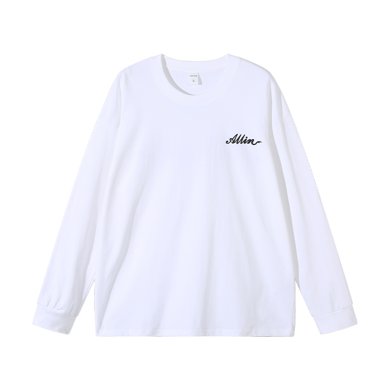 上衣 t恤男女秋冬字母印花圆领套头纯棉重磅打底衫 ALLIN 白色长袖