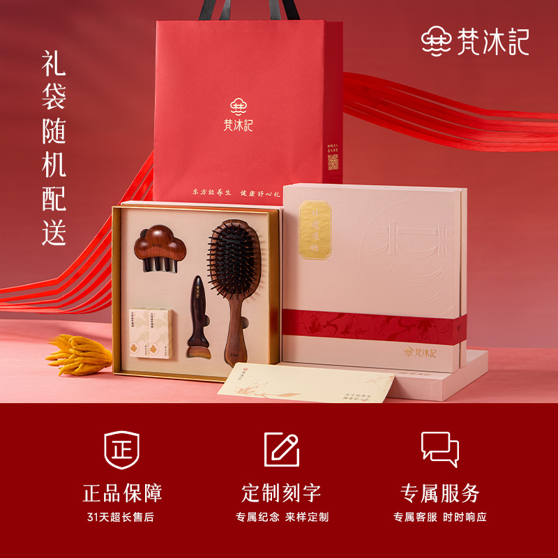 檀木梳子礼盒木梳按摩养生伴手礼母亲节礼物实用送妈妈生日送女友