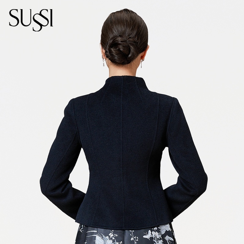 黑色中式 SUSSI 商场同款 新品 刺绣高级感收腰羊毛短外套 古色季