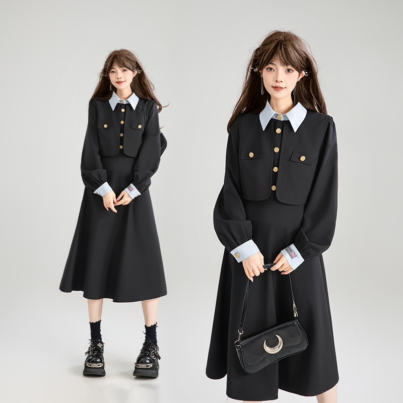 高级感格子假两件丝绒连衣裙女秋冬季 千金裙子 小香风气质加厚法式