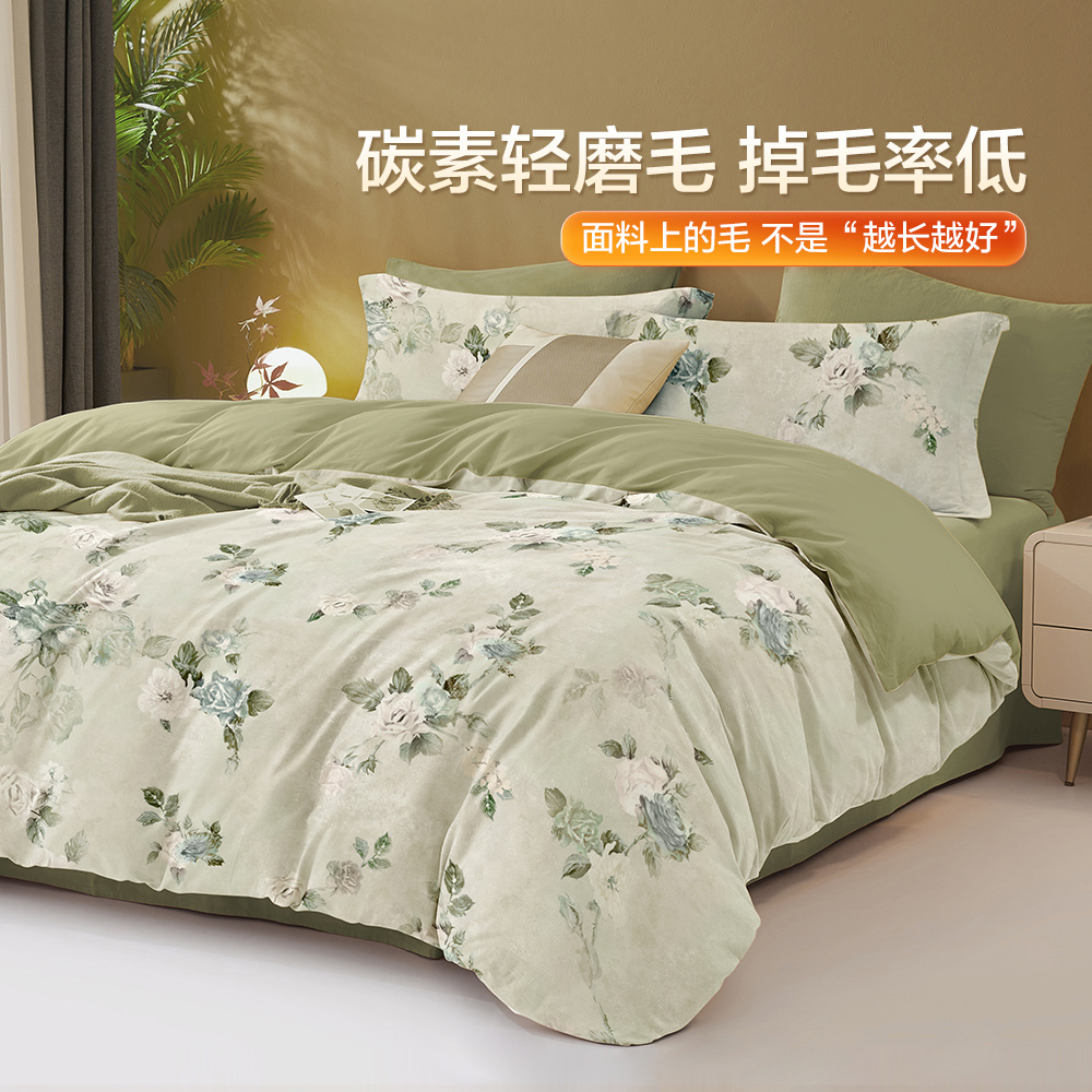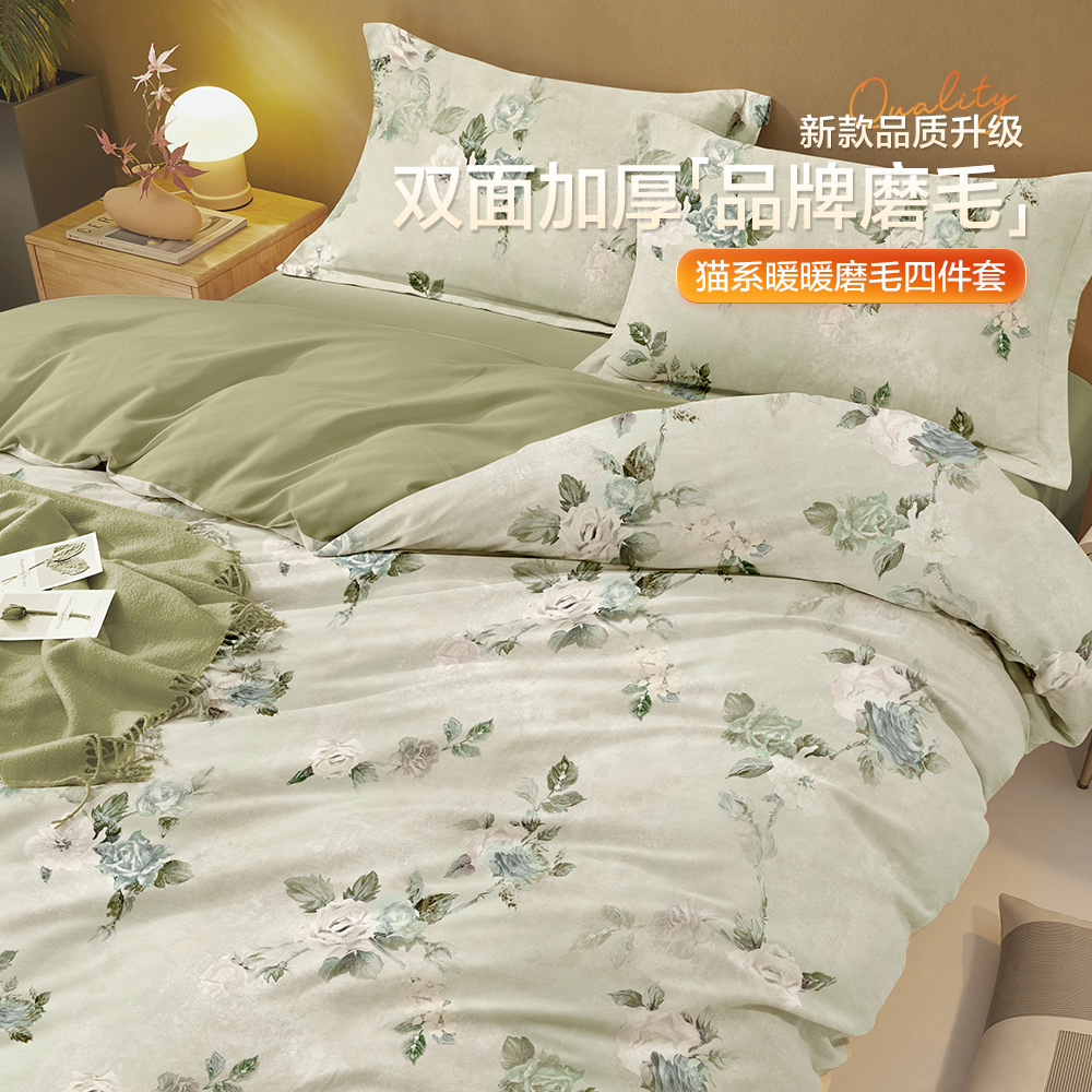 博洋家纺磨毛四件套秋冬季 加厚纯棉全棉床上用品床单被套罩三件套