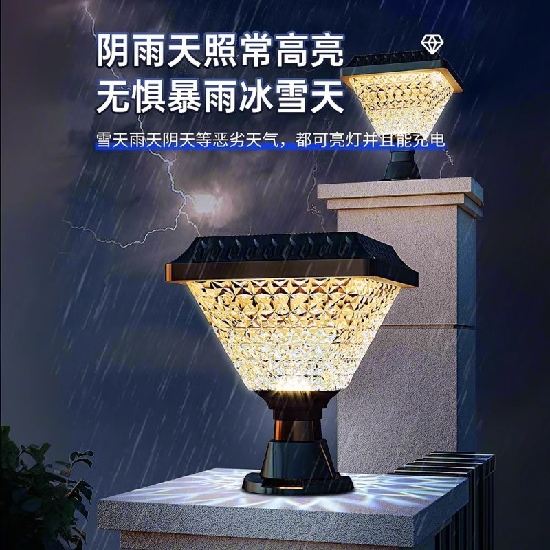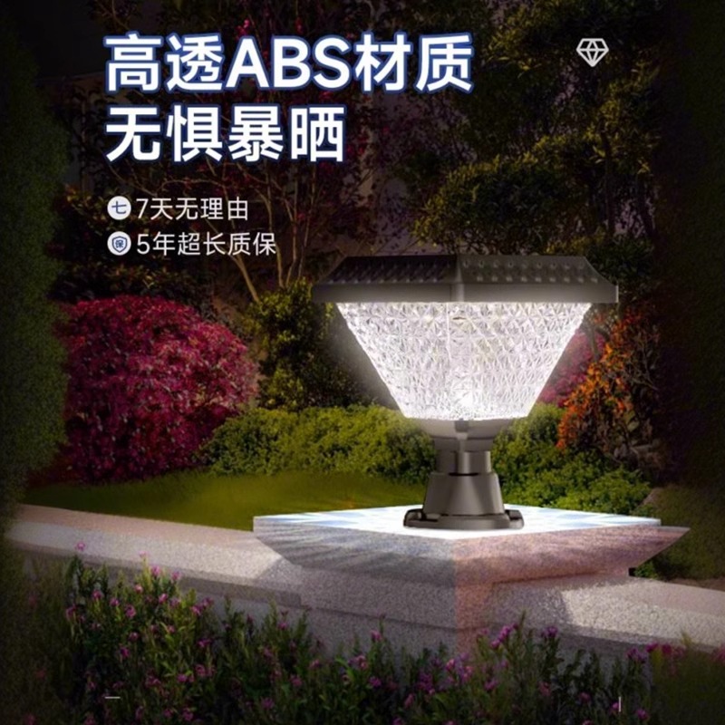 新款 太阳能柱头灯户外防水大门柱一对花园柱子灯太阳能超亮庭院灯
