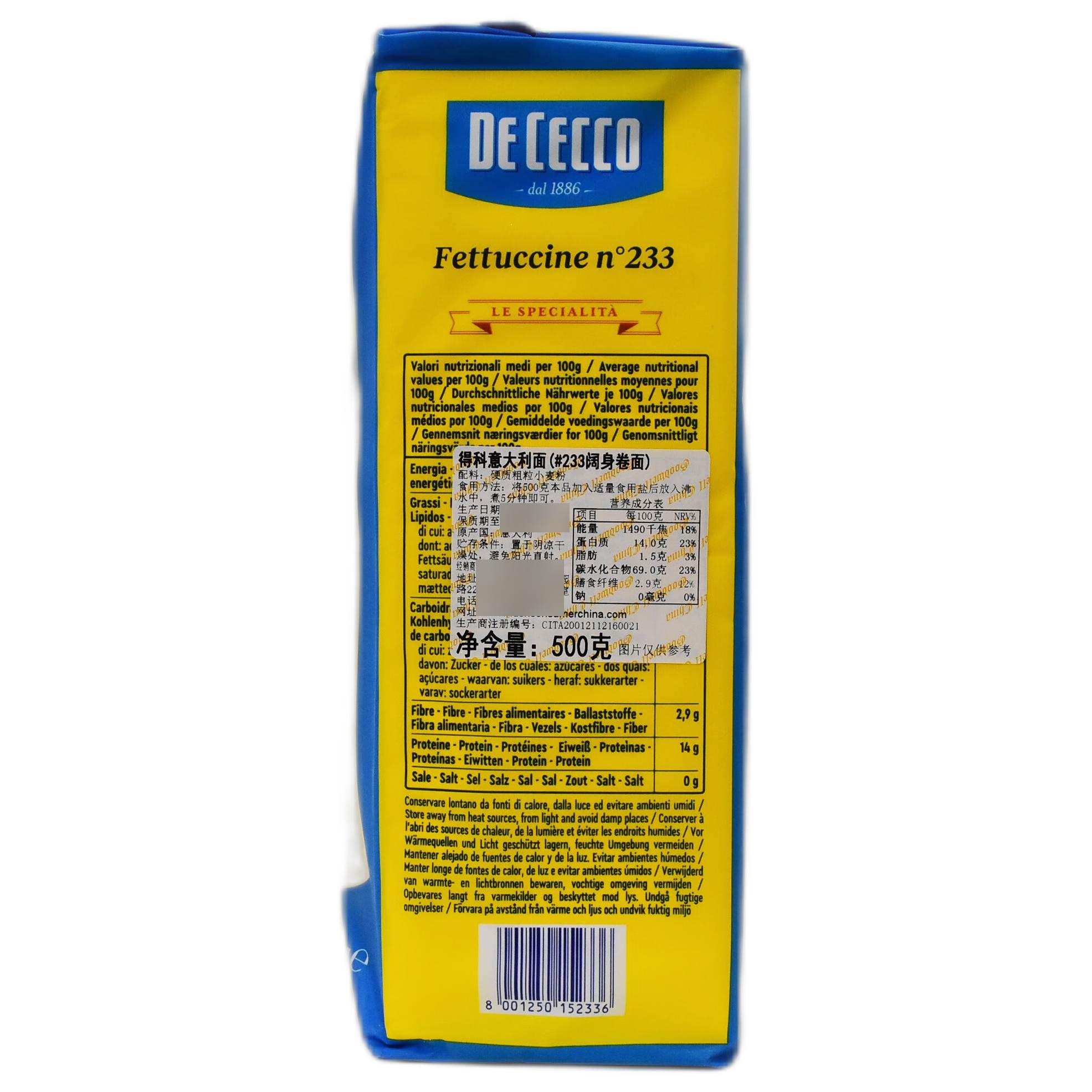 进口dececco得科233 意大利面宽卷面fettuccine 阔身卷面500g