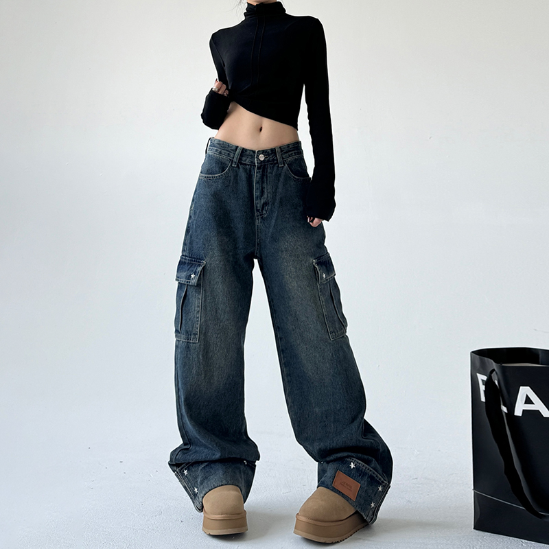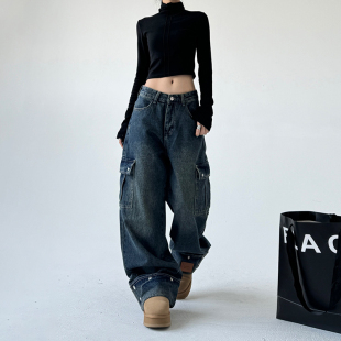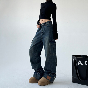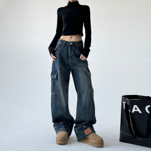 女2025年新款 子女装 秋季 复古宽松直筒阔腿裤 504791 时尚 三福牛仔裤
