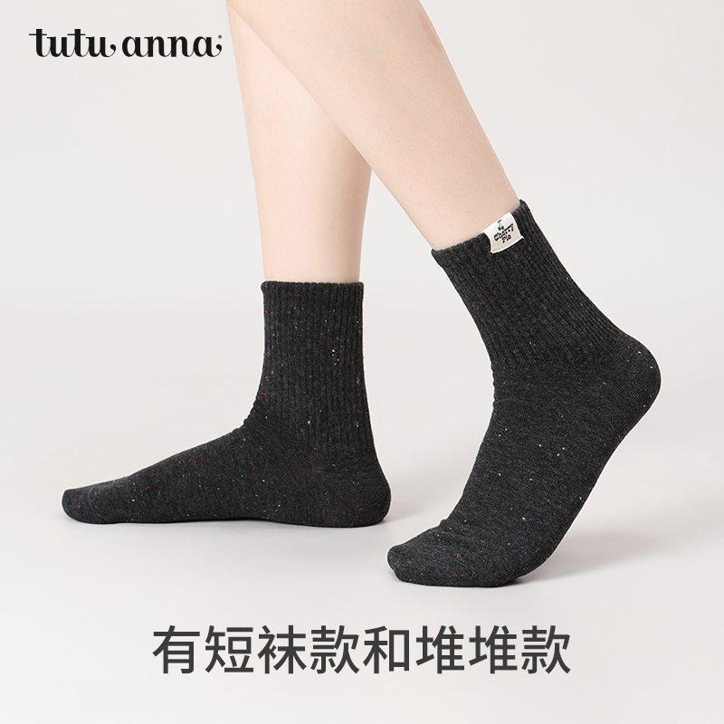 乐福鞋 黑色袜子女中筒纯棉秋冬季 堆堆长袜搭配小皮鞋 爆款 2025新款