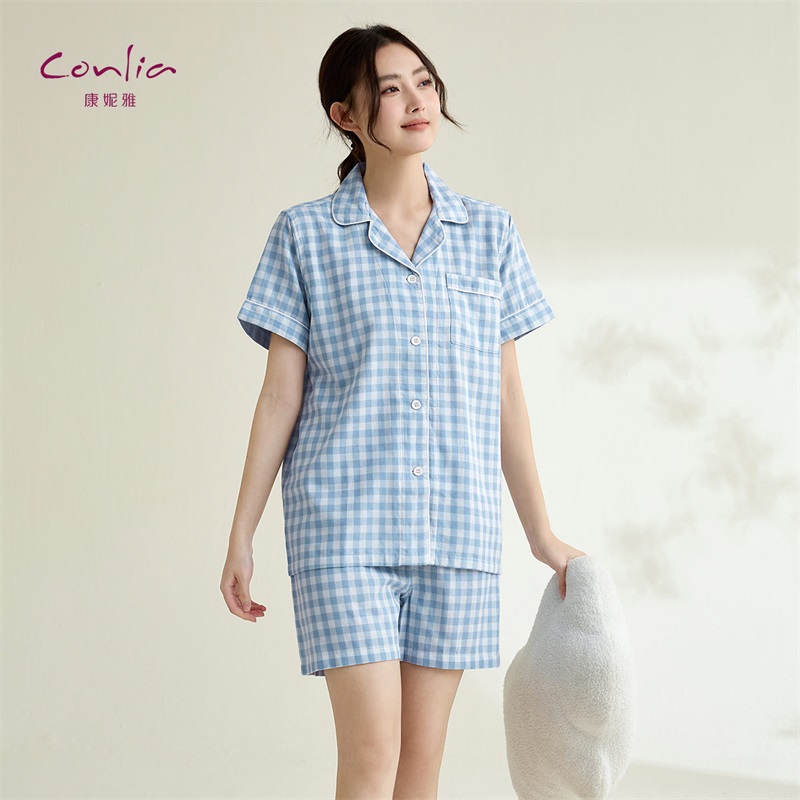 双层纱纯棉2025新款 棉纱薄款 短袖 家居服套装 短裤 康妮雅睡衣女夏季