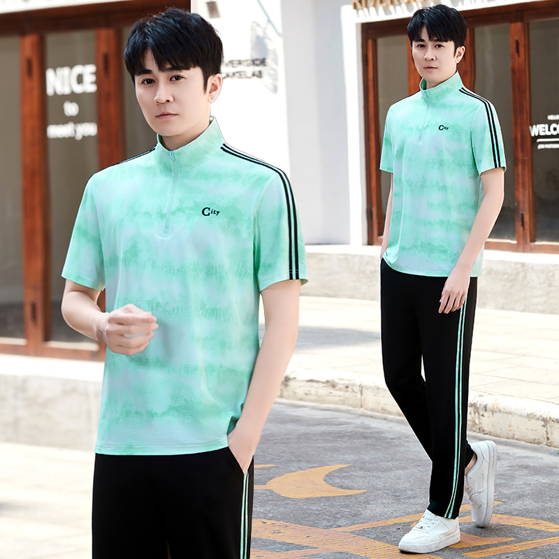 休闲长裤 情侣冰丝短袖 时尚 男运动服套装 速干跑步两件套 t恤夏季