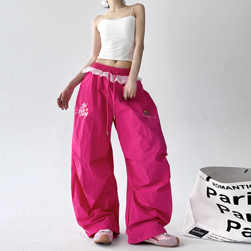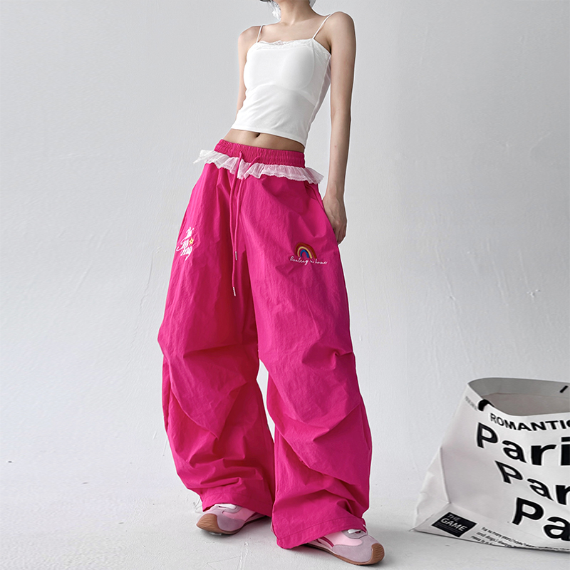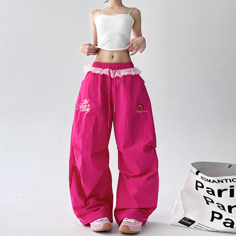 休闲显瘦卫裤 白灰色运动裤 高腰直筒宽松阔腿美式 春秋季 女2025新款