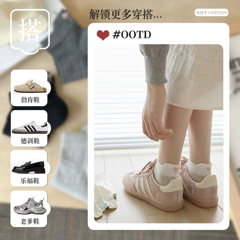 全棉短袜子女春秋季 中短筒袜无骨 纯棉吸汗防臭夏透气运动风秋冬款