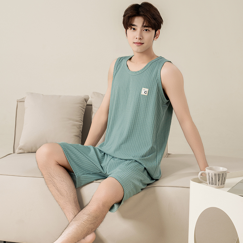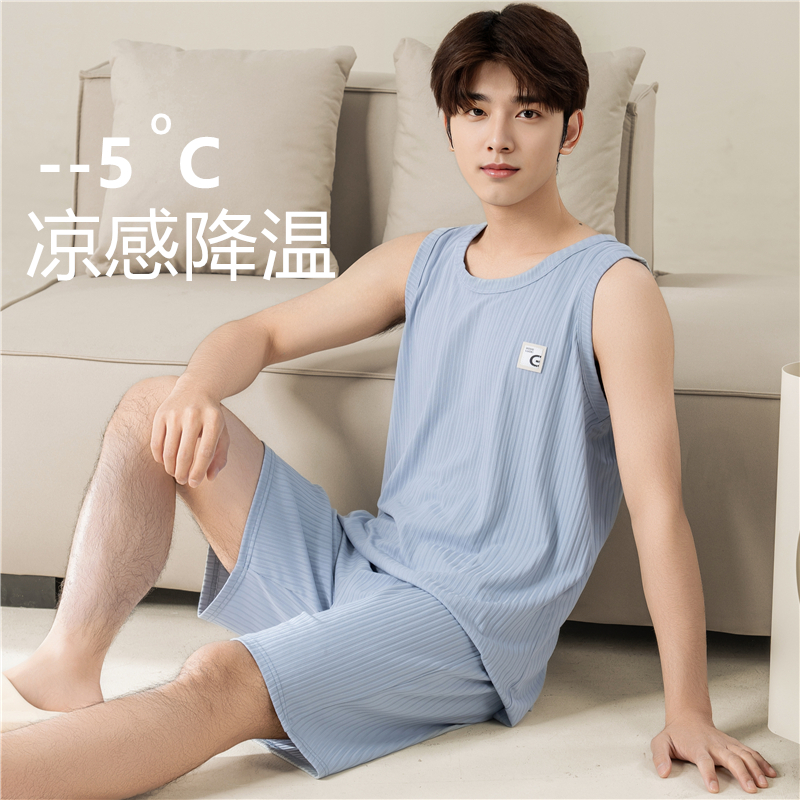 夏季 休闲宽松中青年加大码 家居服睡衣 短裤 夏天冰丝凉感男背心无袖