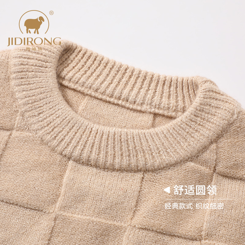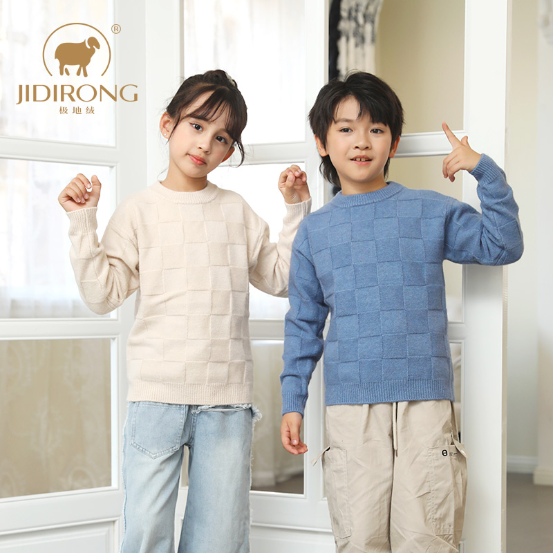 极地绒儿童羊毛衫 圆领男童华夫格毛衣加厚女童针织套头打底衫