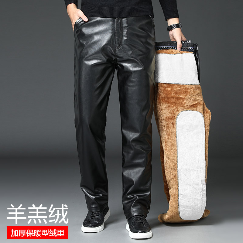 宽松高腰加肥 摩托车骑行保暖外卖防风防水棉裤 皮裤 男加绒加厚冬季