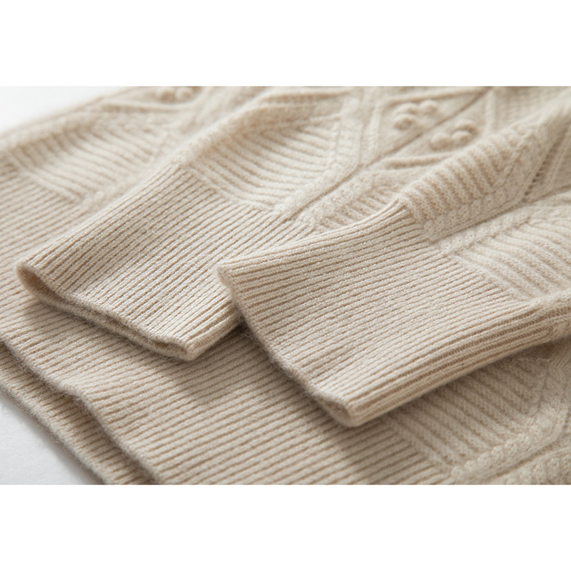 摩安珂 绵羊毛山羊绒高智感扭绳绞花肌理短款 MOCO针织衫 开衫