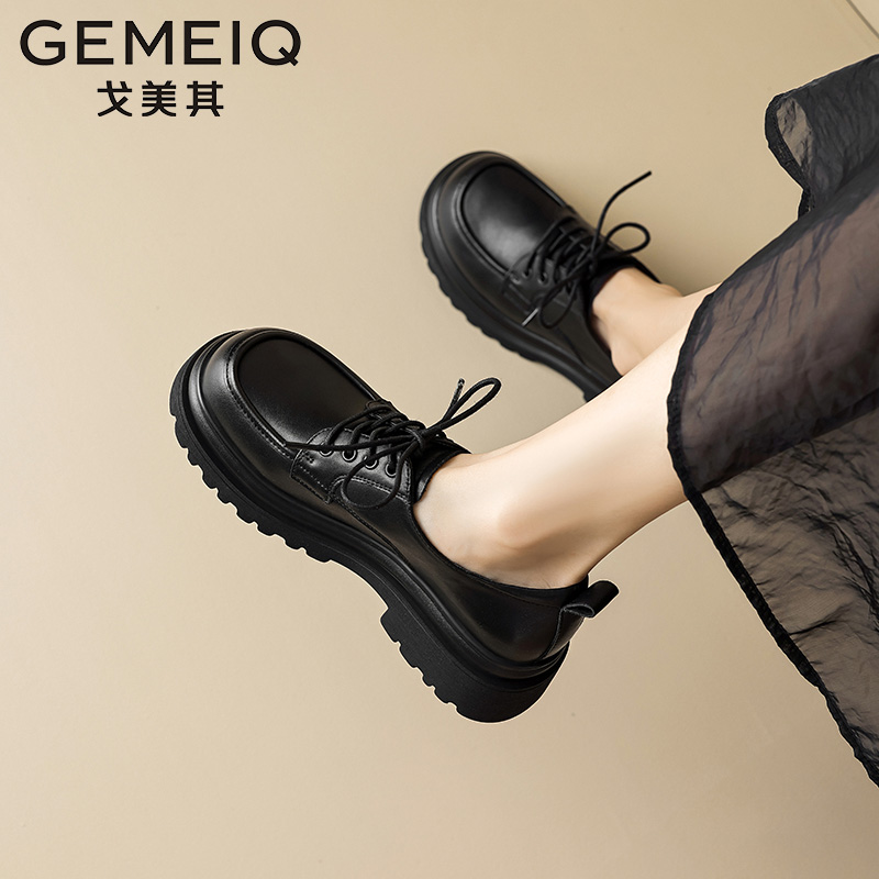 女款 英伦风乐福鞋 厚底舒适新款 系带松糕单鞋 春季 戈美其复古小皮鞋