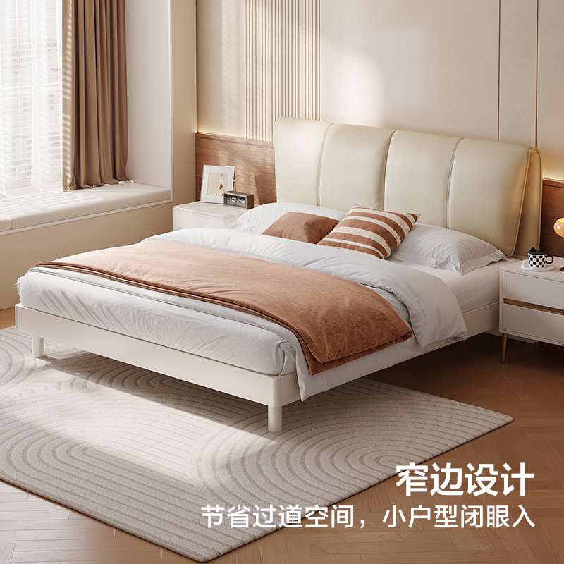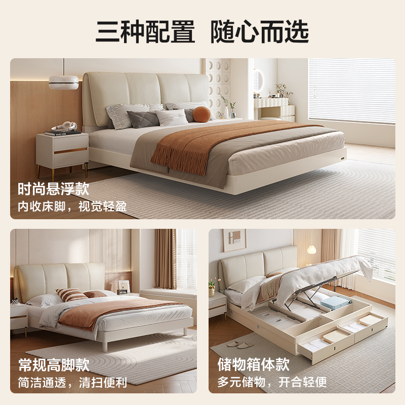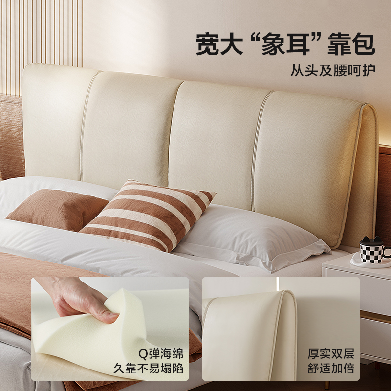 全友家居现代简约悬浮单人皮艺床主卧室1.8米大象耳朵双人储物床