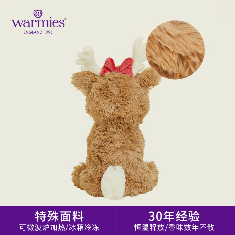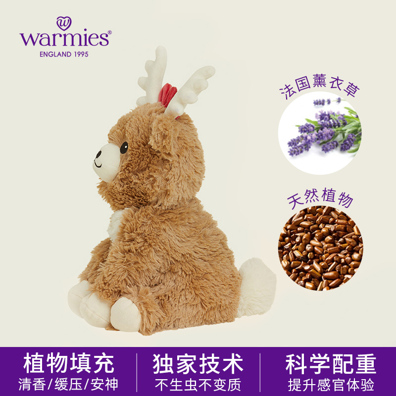 英国warmies 红弓驯鹿安抚玩偶公仔陪伴送礼毛绒可加热薰衣草圣诞