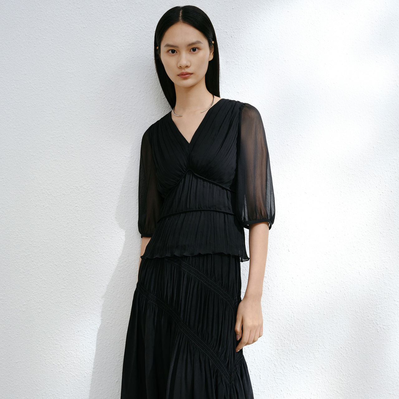 气质衬衫 商场同款 修身 V领肌理感五分袖 上衣夏 IMM尹默女装