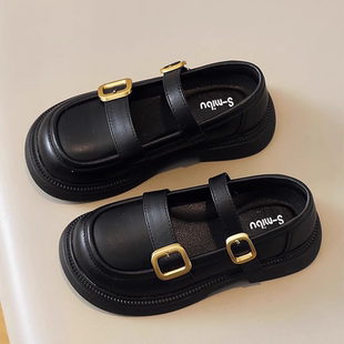 中大童洋气英伦风乐福鞋 儿童黑色公主鞋 子 2025春秋新款 女童小皮鞋