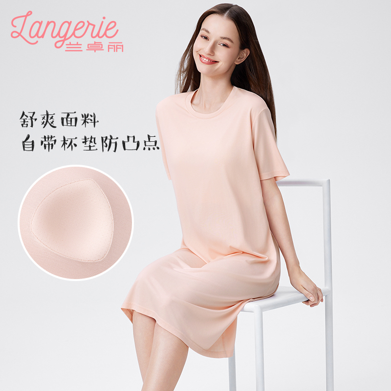 睡衣 款 兰卓丽带胸垫睡裙女防凸点睡衣短袖 宽松舒适家居服夏季