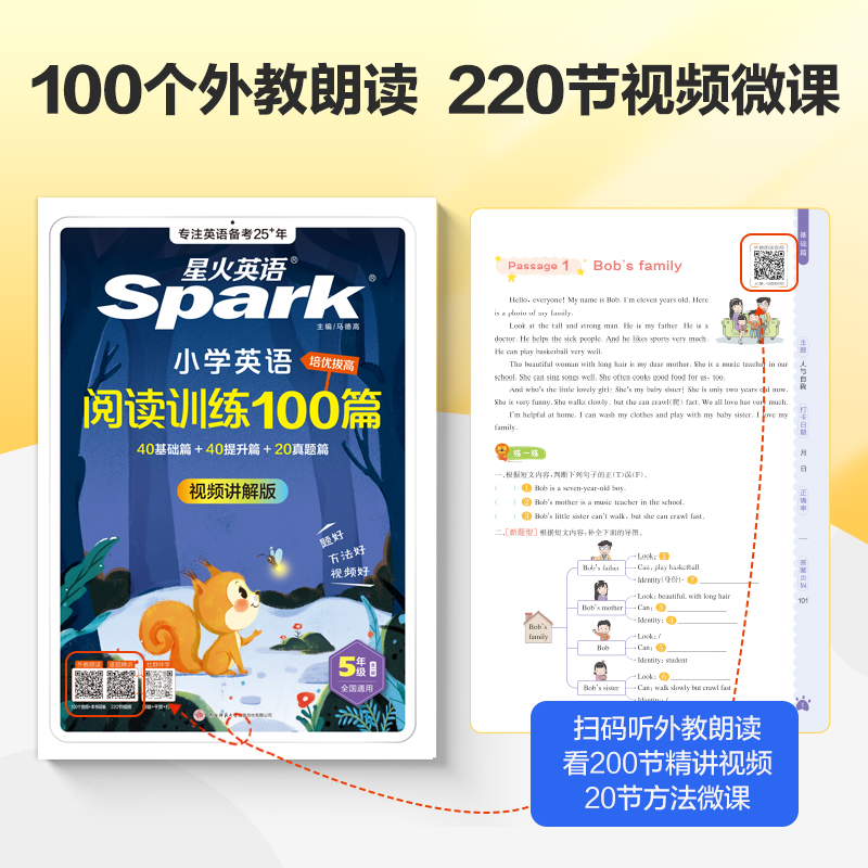星火英语小学生英语阅读训练100篇五年级听力训练100篇专项训练一百篇常考题型真题演练解答技巧2025新旗舰店正版