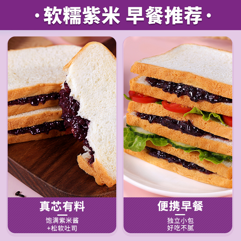 比比赞紫米面包早餐整箱糯米奶酪全麦手撕吐司小零食小吃休闲食品