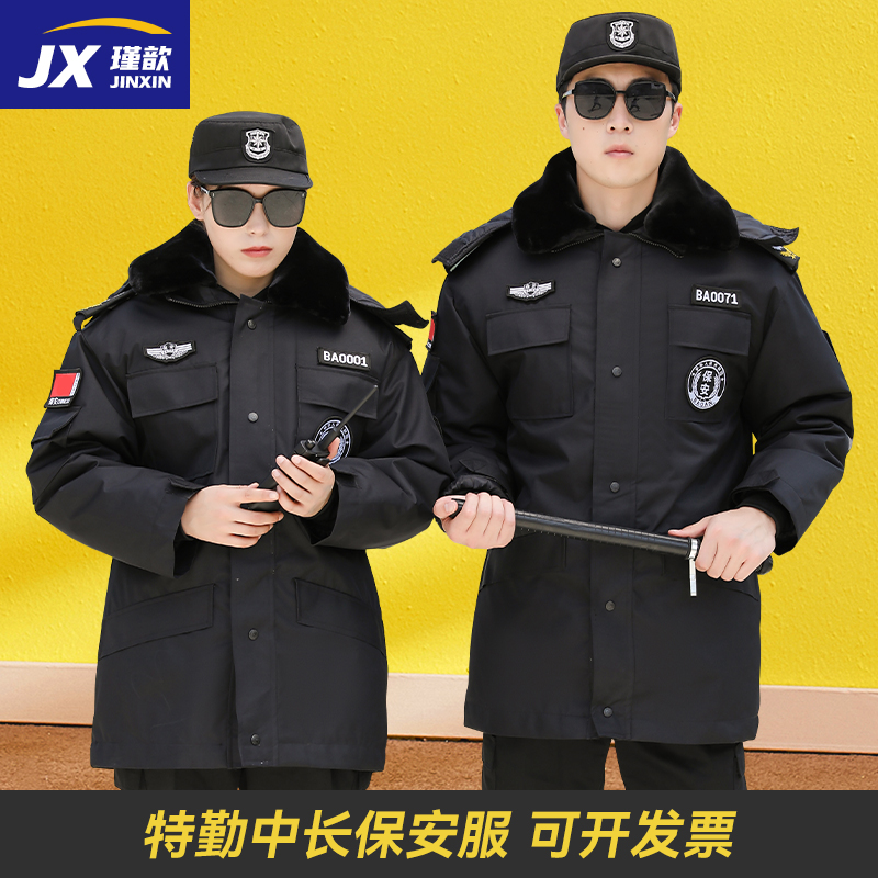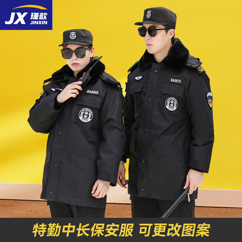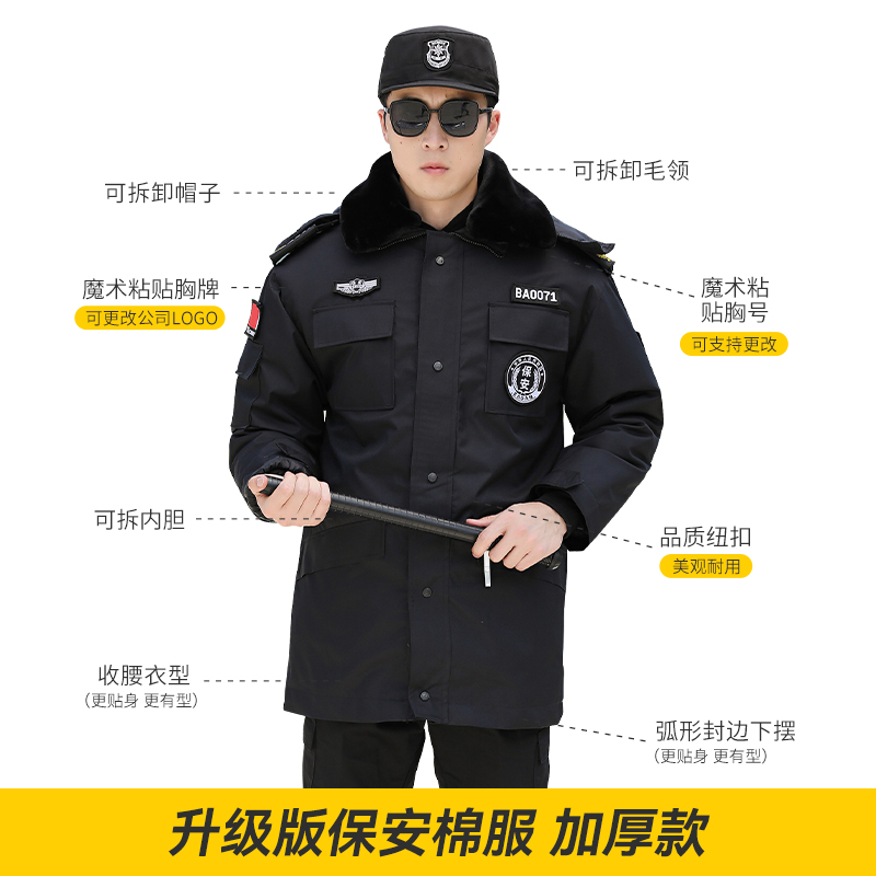 多功能棉服棉袄 保安大衣中长款 保安工作服冬装 加厚棉衣防寒服冬季