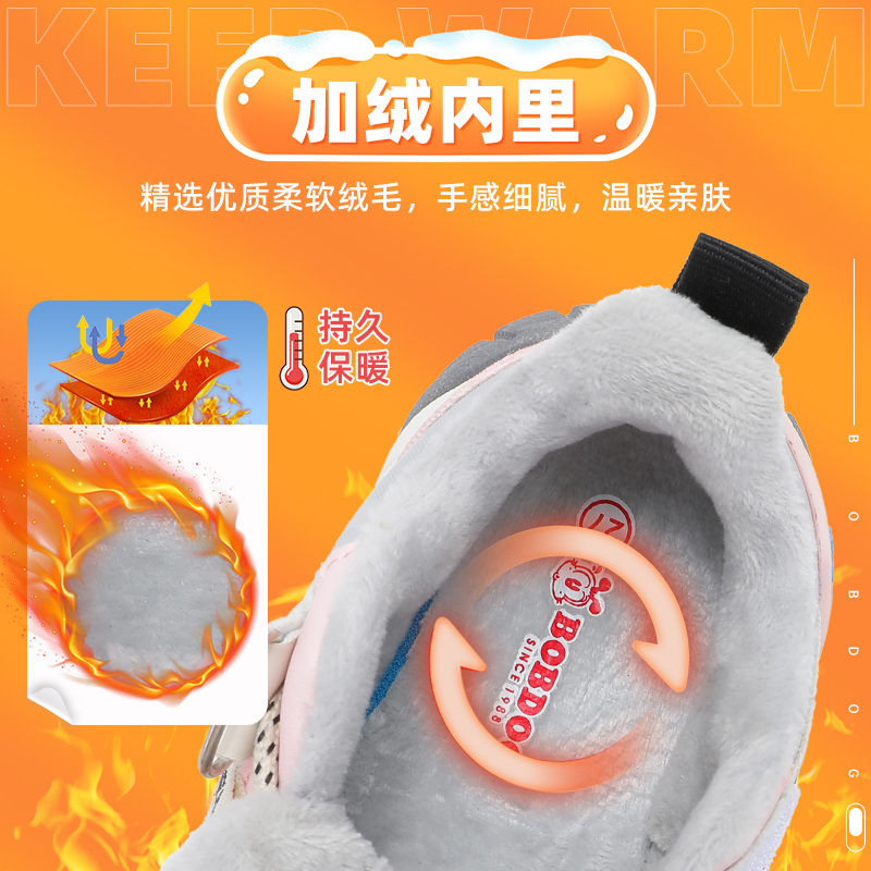 女童鞋 儿童二棉鞋 子冬季 保暖运动鞋 男 加绒加厚女宝冬鞋 巴布豆童鞋