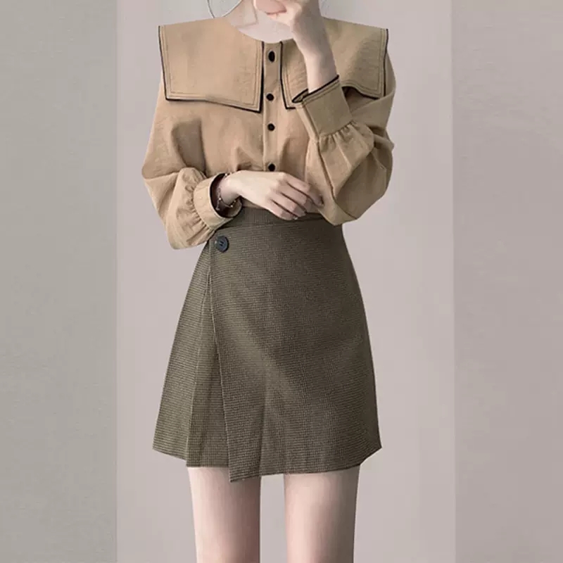 时尚 洋气减龄复古港风海军领衬衫 女装 新款 气质设计感上衣 2025秋季