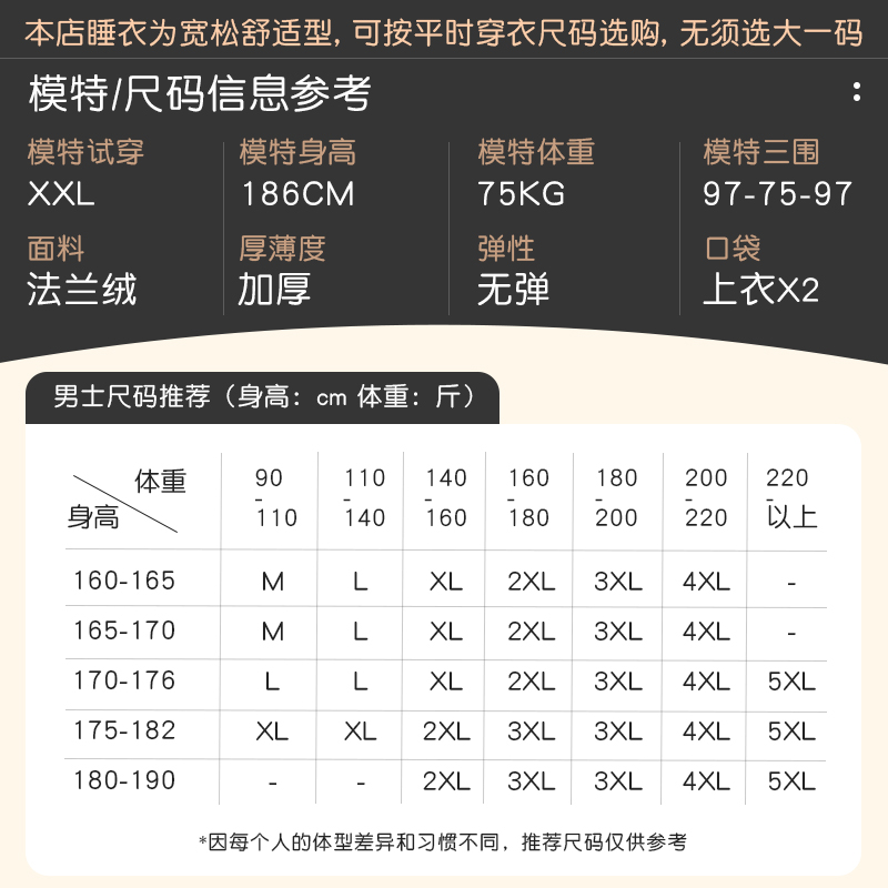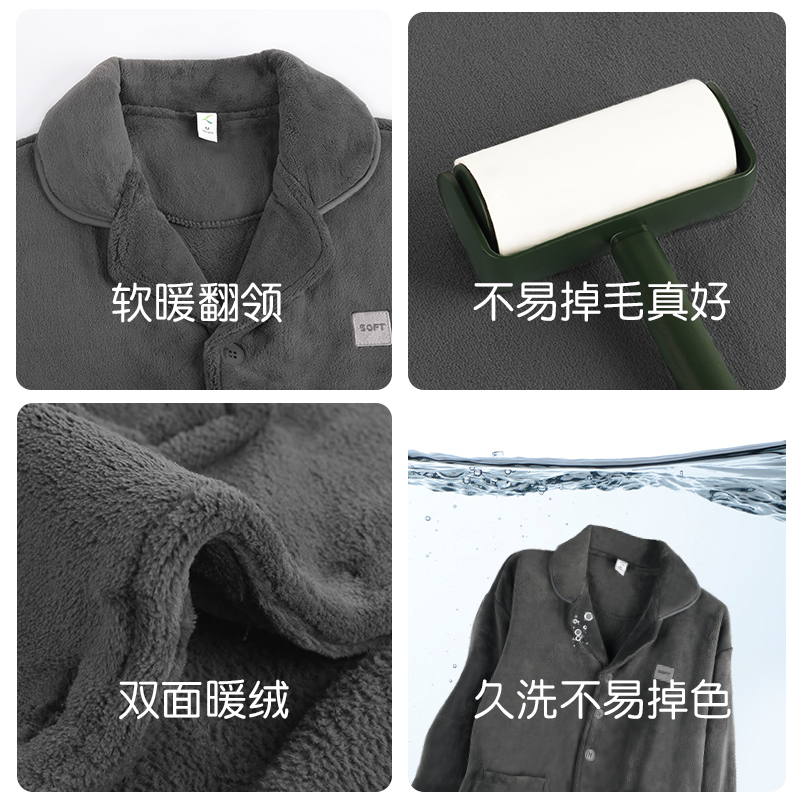 保暖法兰绒家居服大码 加绒加厚款 珊瑚绒睡衣男冬季 套装 抗静电