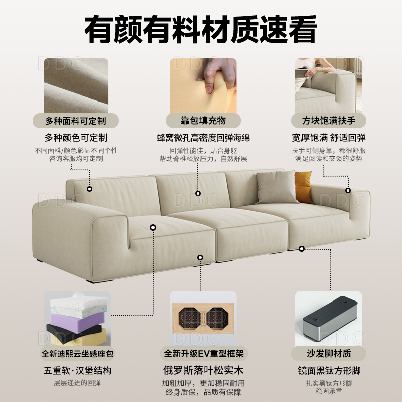 政府补贴DDC大黑牛方块猫抓绒布艺沙发简约大小户型雪尼尔布沙发